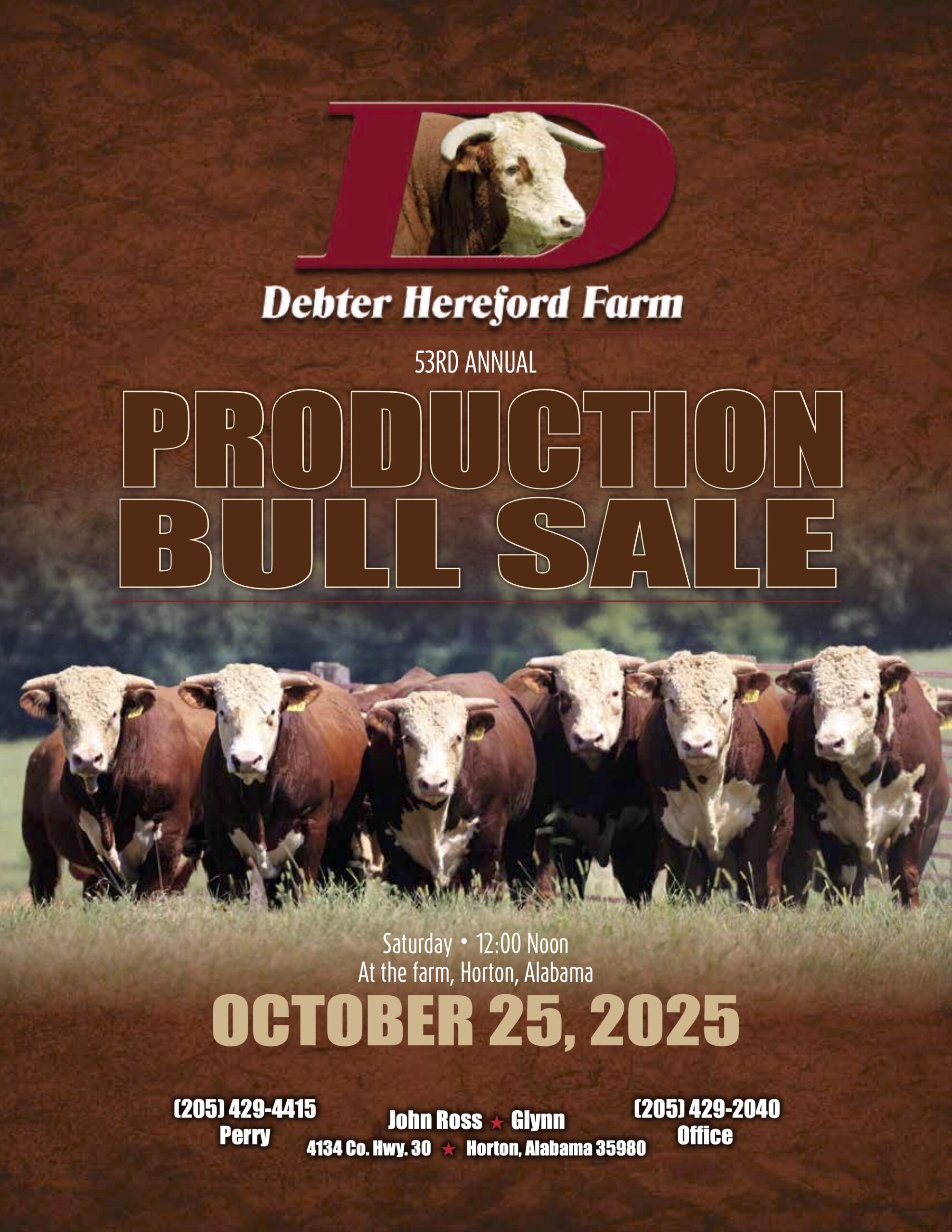 Debter Hereford Farm is a family ranching operation, located in north central Alabama. Debter Hereford Farm has been in operation since 1948 utilizing solid performance Hereford cattle.